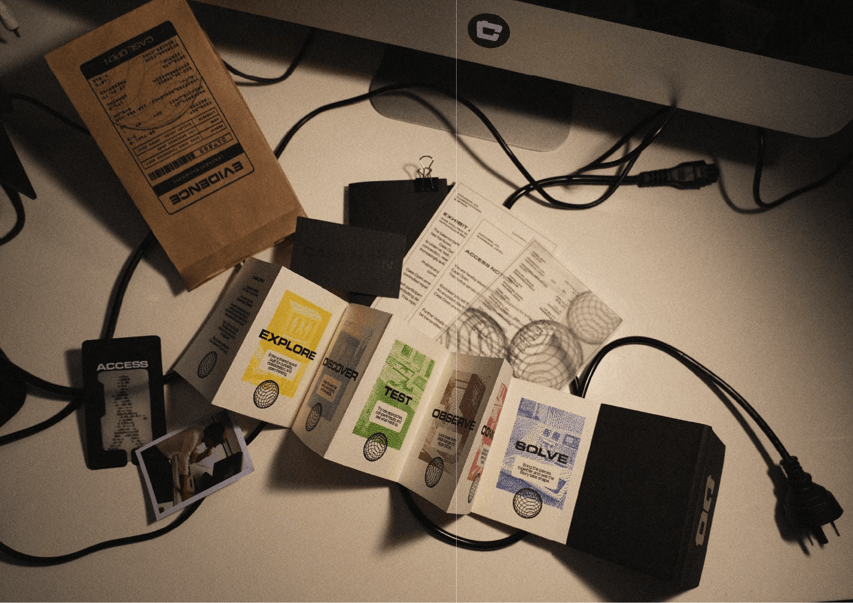 Print marketing materials for a conceptual social venue, aiming to investigate the role of technology in helping and hindering social connection.